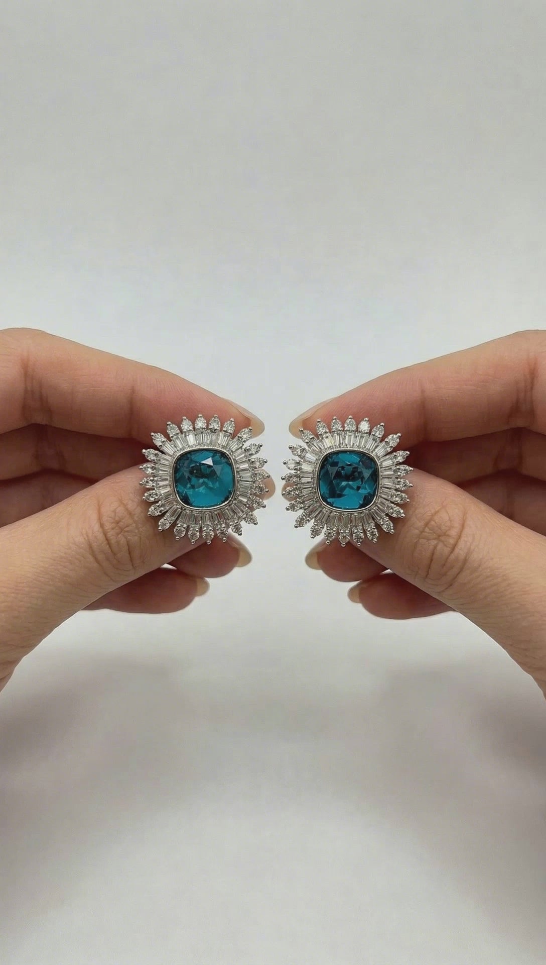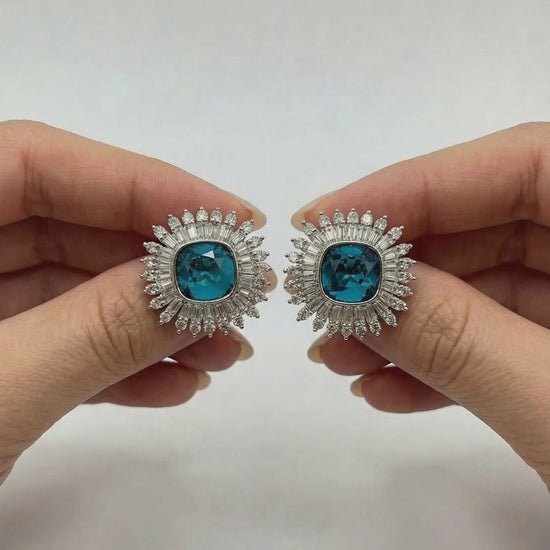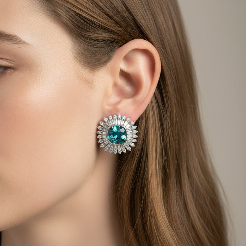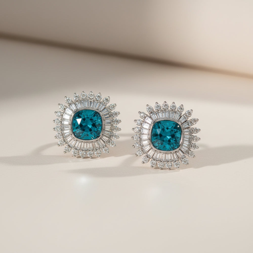 中央のブルージルコニアを囲む繊細なストーンセッティングが、まるで光が広がるような輝きを演出します。存在感がありながらも上品で洗練された仕上がりです。